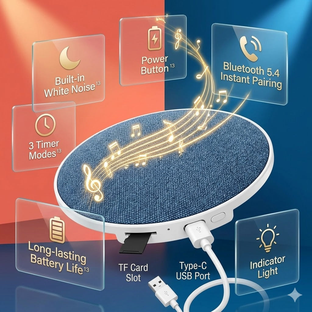 Experience soothing white noise, crystal-clear Bluetooth audio, and all-night comfort in one sleek device.